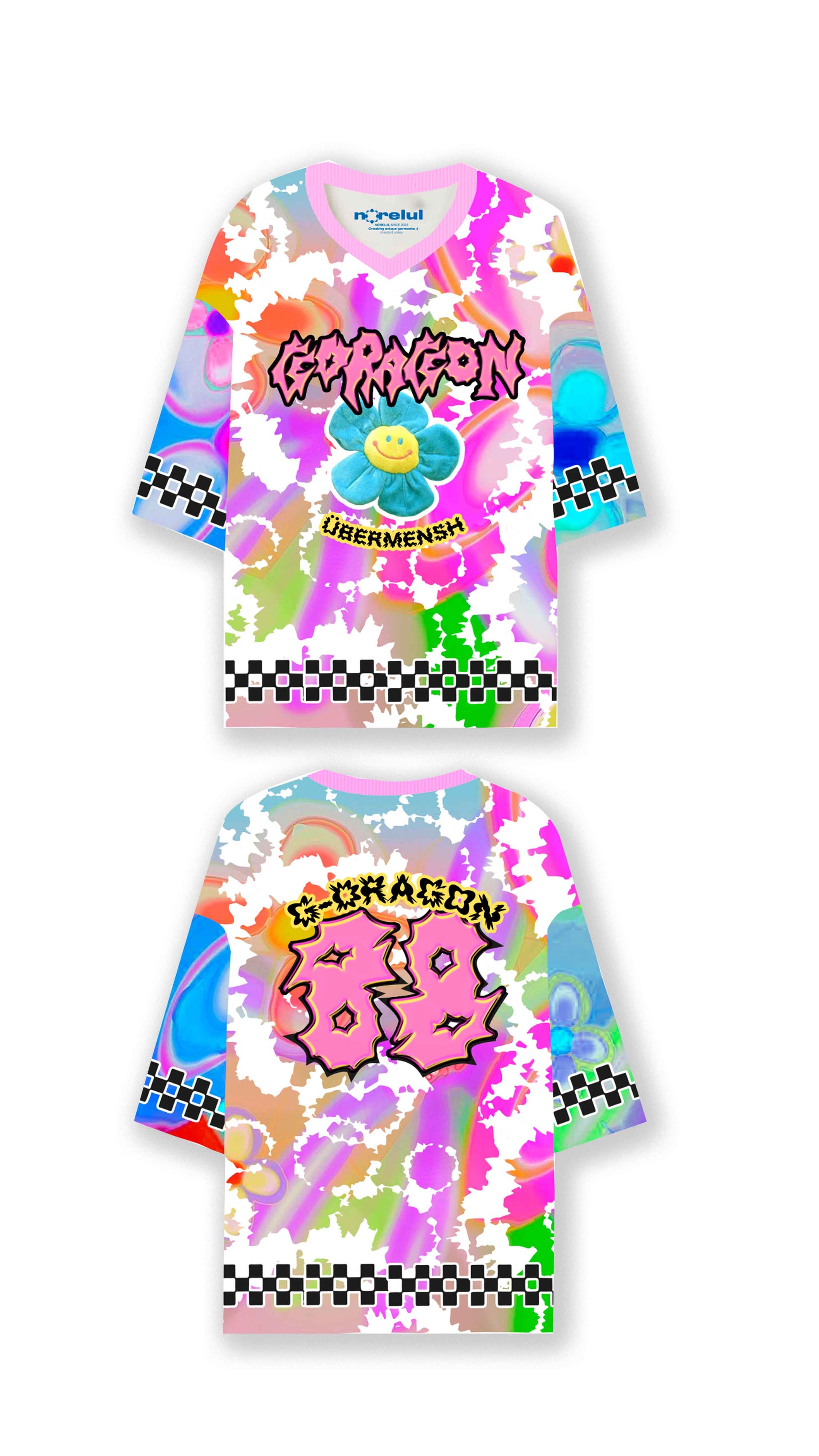 Jersey tipo deportivo creado y producido por Norelul en México inspirada en la esencia de la carrera en solo de G-Dragon del grupo de kpop Big Bang. Esta playera de cuello en V con manga corta en fit oversize para sentirte cómodo y suelto, esta realizada en un material 100% poliéster de una alta gama y cálidad para la resolución óptima de nuestros estampados así como un tacto suave al momento de tener interacción con tu piel.
