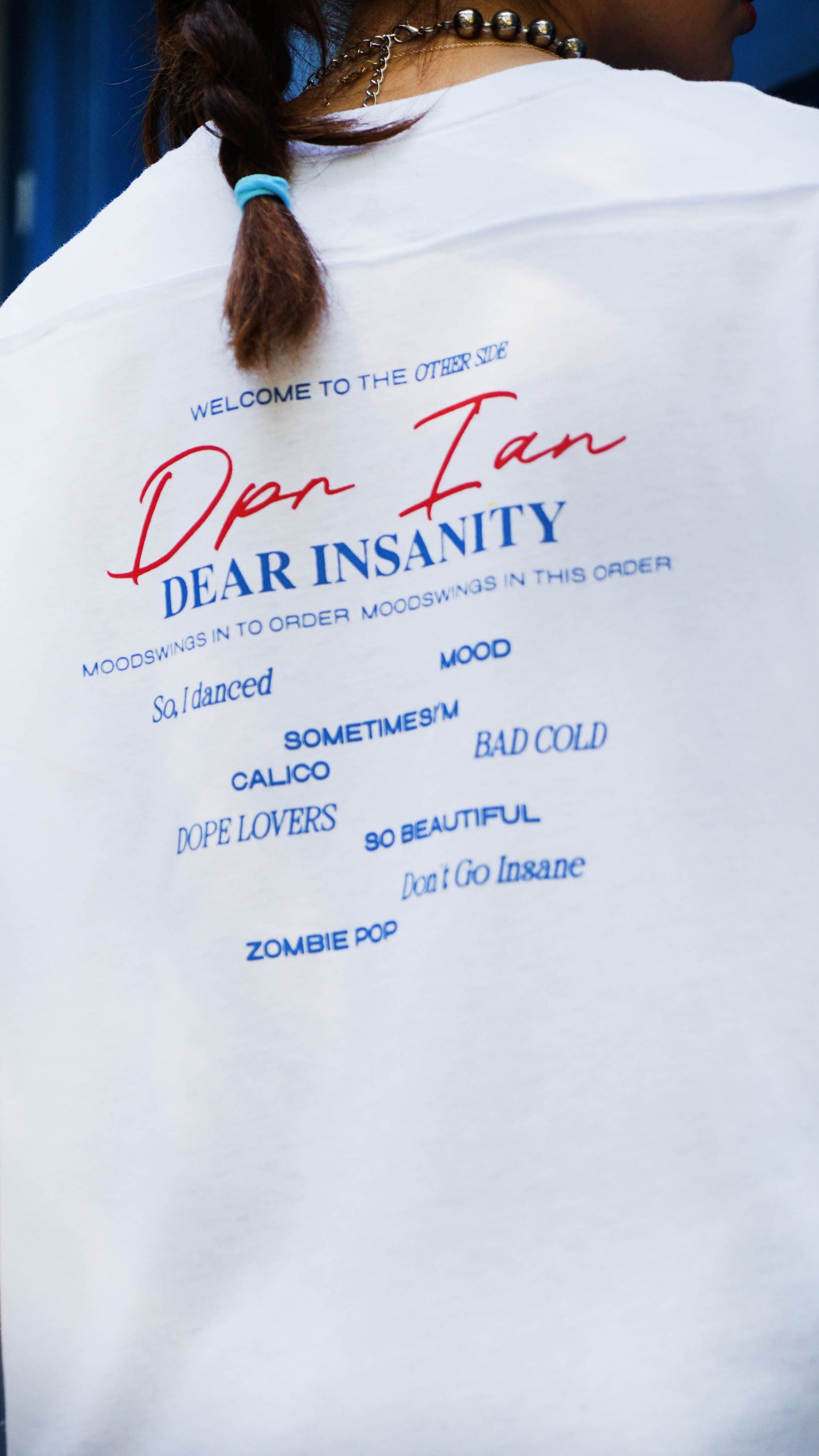 La Playera DPR IAN de nuestra serie PERSONA, es de cuello redondo y manga corta en tela de punto con composición de algodón y poliéster peinado para una suavidad extrema. Esta playera esta realizada en nuestro fit Oversize Boxy con hombro caído y un extra de tela para que de un look cómodo y cool con la caída del corte. Los estampados de esta prenda están realizados en serigrafia con técnica en los nombres como un detalle especial.