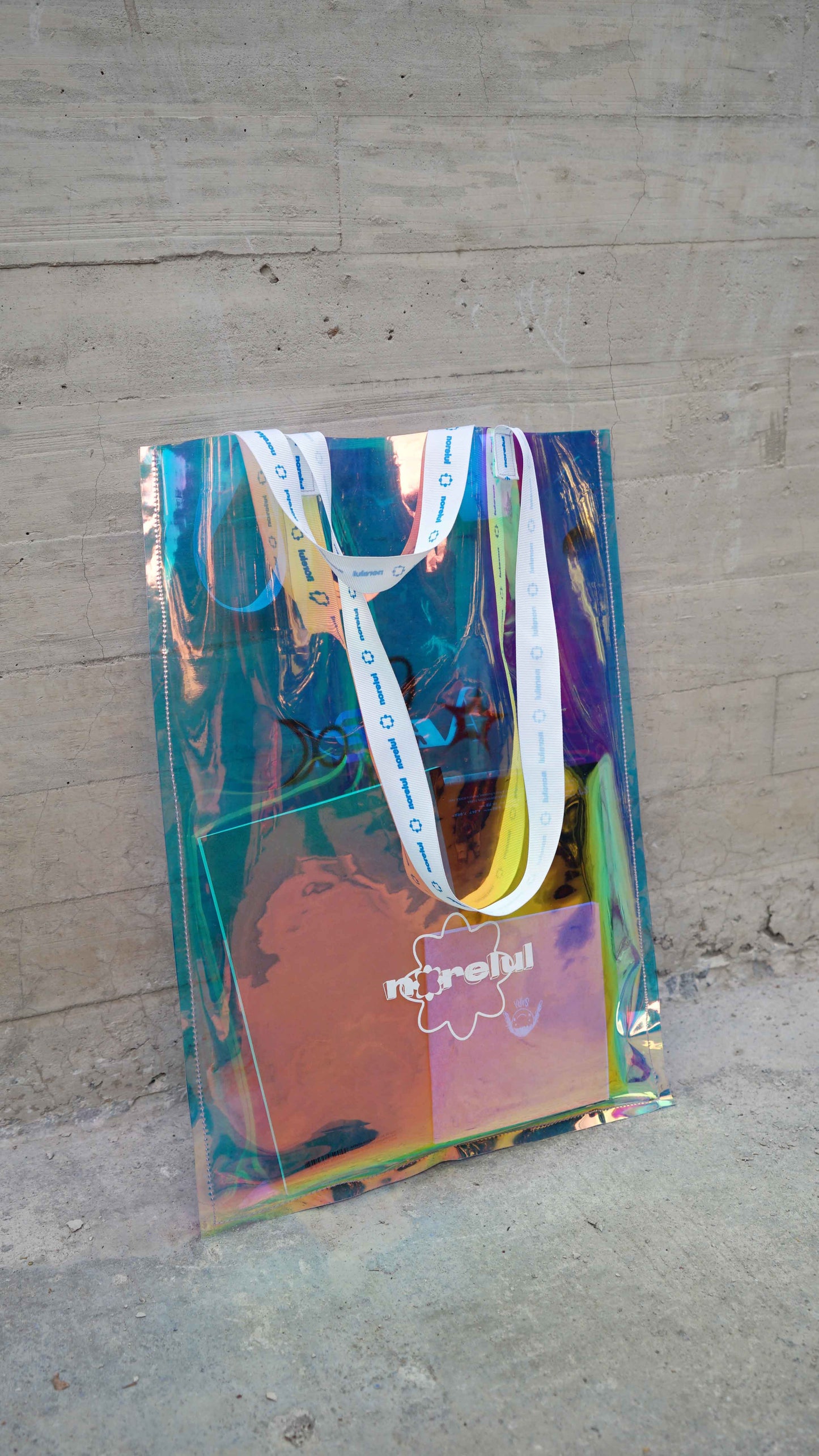 Tote Bag de la drop Aespa réalisé dans cette matière plastique qui, en plus d'être résistante, est super mignonne avec ses tons irisés et holographiques. Les impressions sont réalisées en sérigraphie pour une finition durable et agréable au toucher.