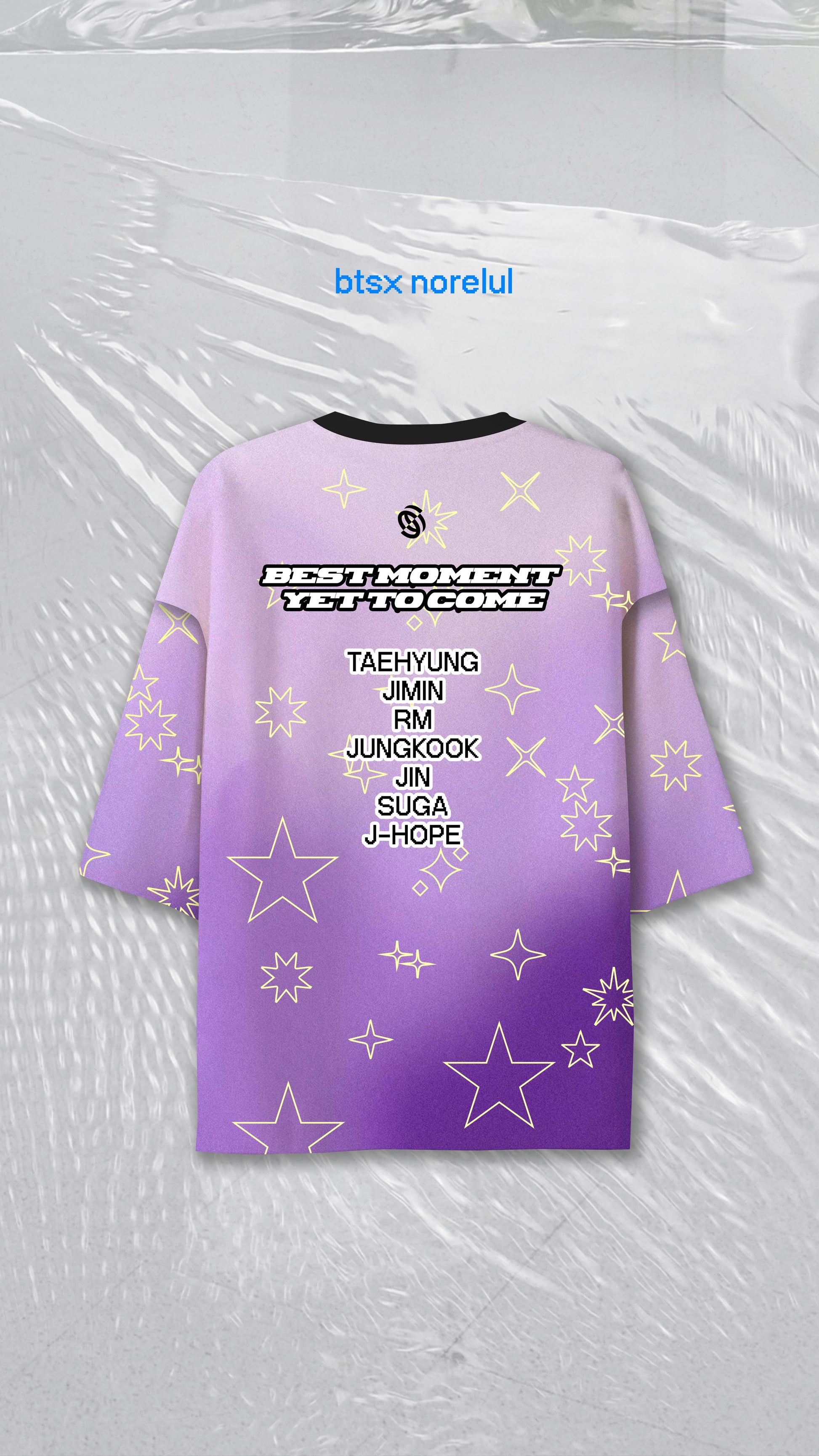 Jersey tipo deportivo creado y producido por Norelul en México inspirada en la esencia del grupo kpop BTS y parte de la carrera en Solo de Jhope, Agust D y Jungkook Esta playera de cuello en V con manga corta en fit oversize para sentirte cómodo y suelto, esta realizada en un material 100% poliéster de una alta gama y cálidad para la resolución óptima de nuestros estampados así como un tacto suave al momento de tener interacción con tu piel.