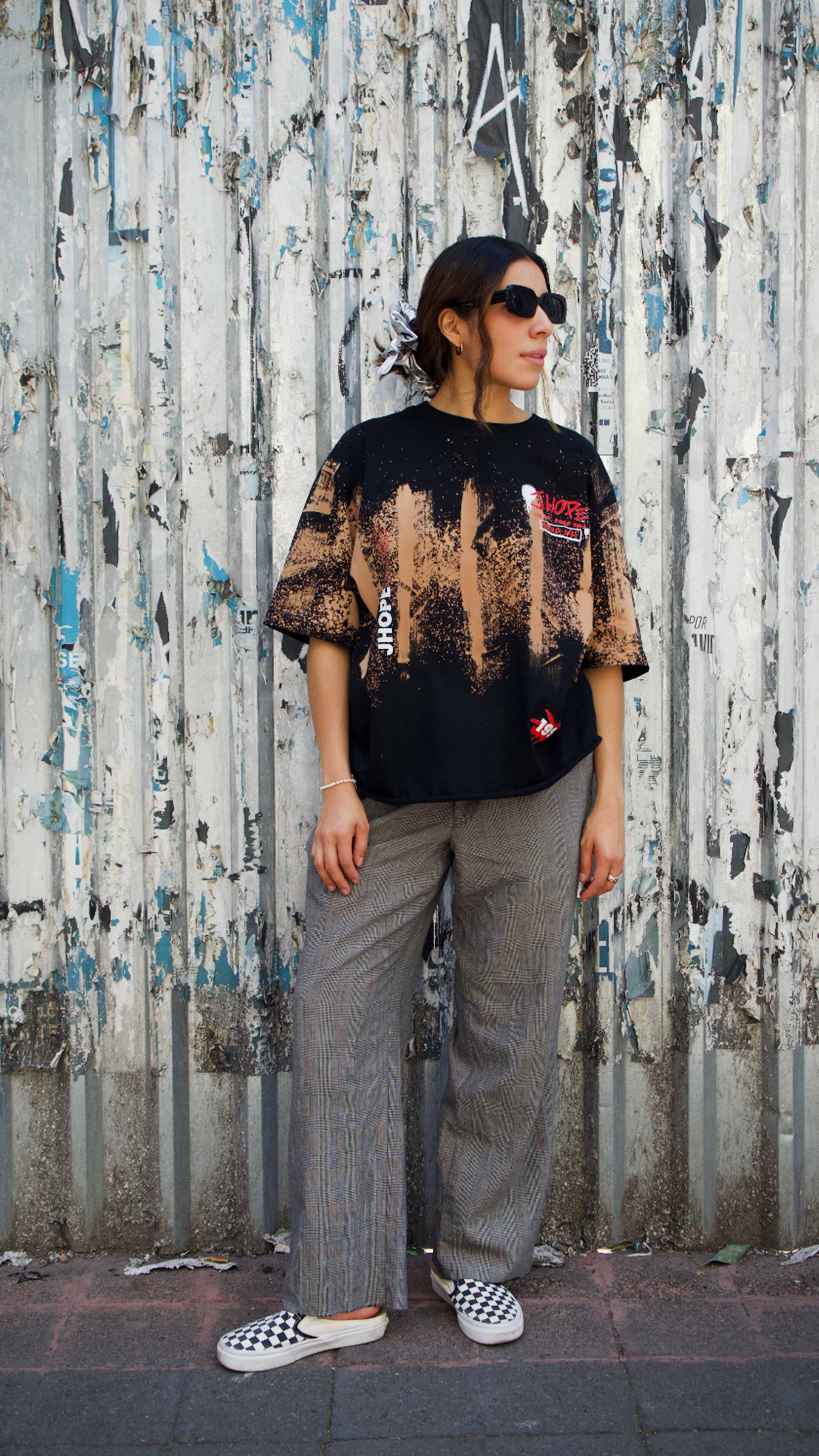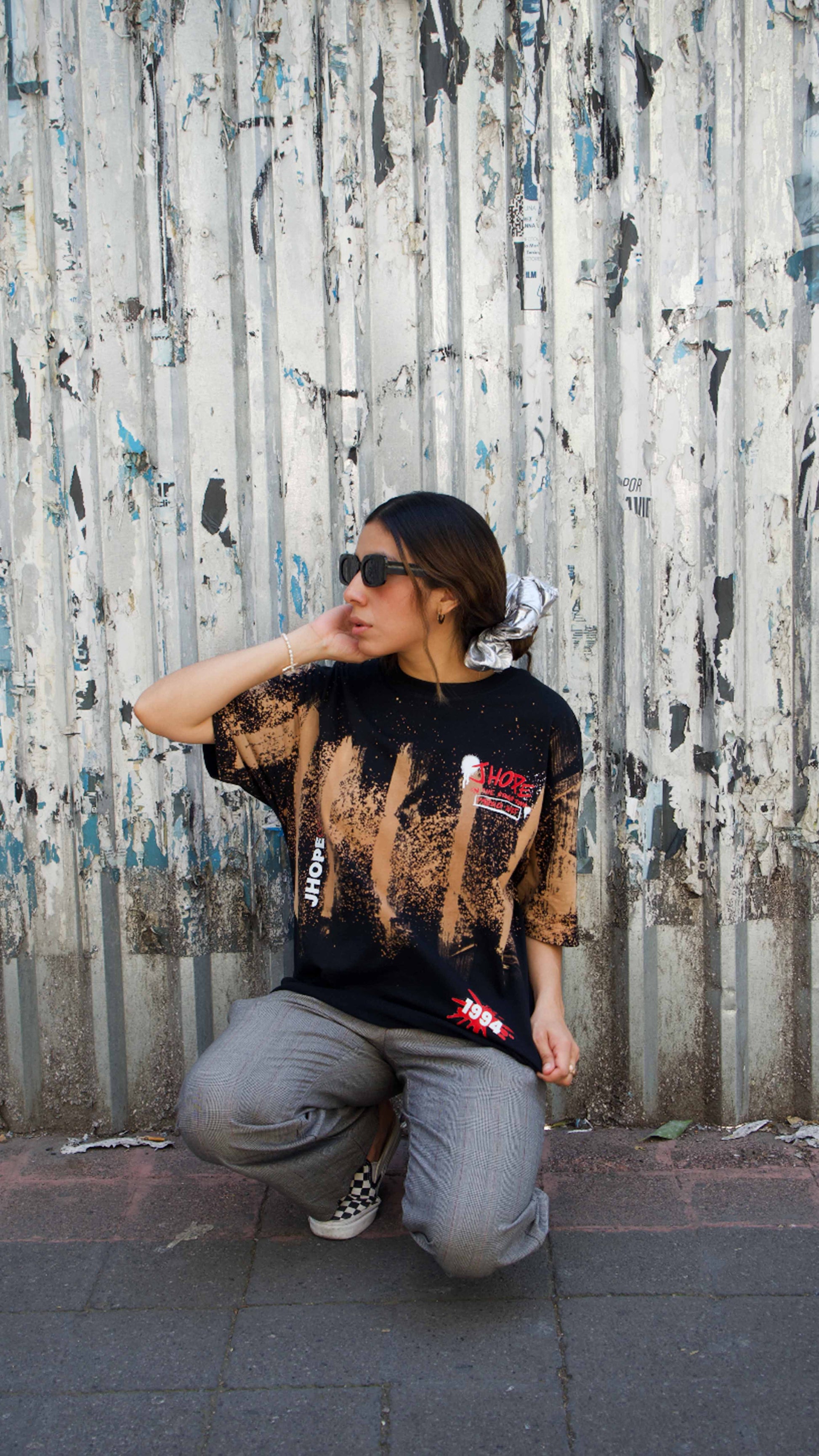 Playera de cuello redondo oversize en corte oversize creada y producida por Norelul en inspirada en esta esencia rocker que se acerca a partes de los conceptos de la carrera de Jhope como solista, del grupo BTS . Realizada en chiffon 100% algodón de una alta gama y cálidad para la resolución óptima de nuestros estampados así como un tacto suave al momento de tener interacción con tu piel. Trabajada en un fit oversize de hombro caído para un look cómodo y actual.